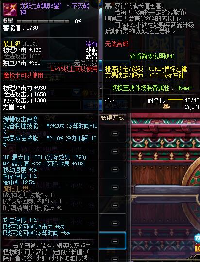 | 65 | 破军战戟 | *Lv65~71普通地下城怪物掉落 *在加百利的神秘商店购买 |