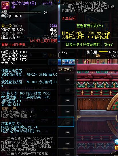 | 75 | 龙跃之战戟[4星] - 不灭战神 | *完成二次觉醒任务后可以从NPC小铁柱处获得此道具。 | ||