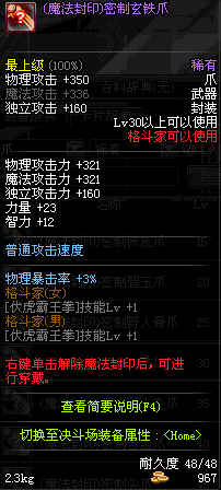 | 30 | (魔法封印)密制玄铁爪 | *Lv29~36普通地下城怪物掉落 *完成[再探英雄冢]任务 *使用Lv29~36怪物掉落的设计图进行制作 |