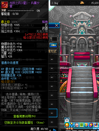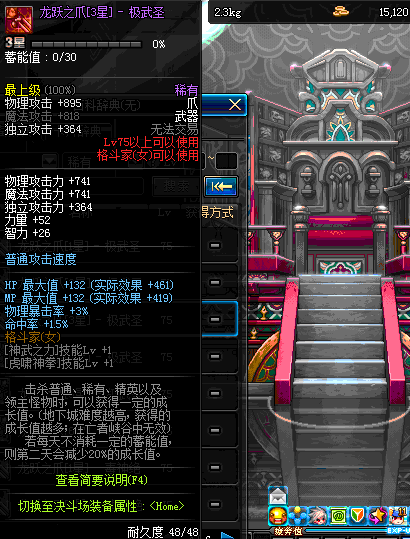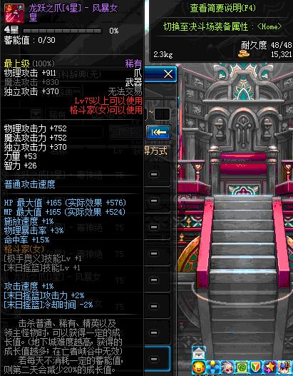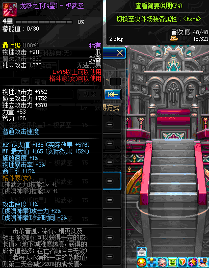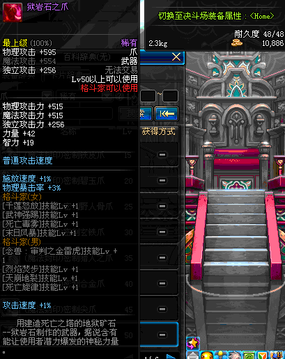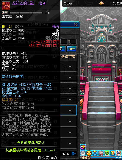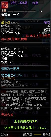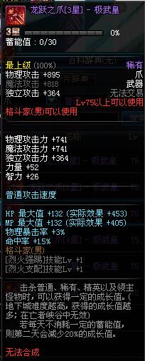| 75 | 龙跃之爪[3星] - 极武皇 | *完成二次觉醒任务后可以从NPC小铁柱处获得此道具。 | ||