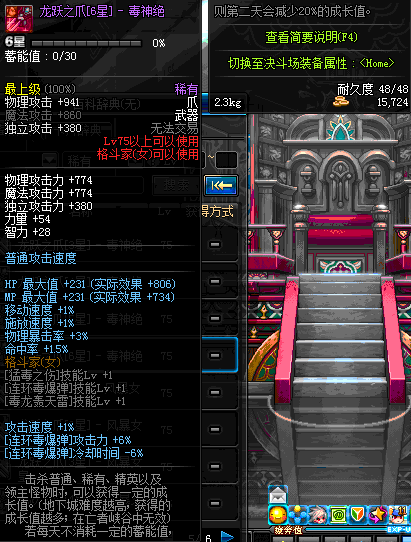 | 75 | 龙跃之爪[6星] - 毒神绝 | *完成二次觉醒任务后可以从NPC小铁柱处获得此道具。 | ||