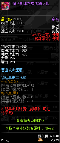 | 80 | 邪风异云爪 | *Lv80~86普通地下城怪物掉落 *在加百利的神秘商店购买 |