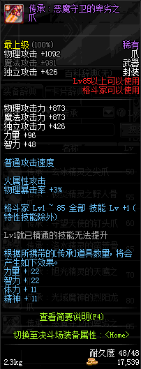 | 85 | 圣物 : 恶魔守卫的卑劣之爪 | *Lv85~91普通地下城怪物掉落 | ||