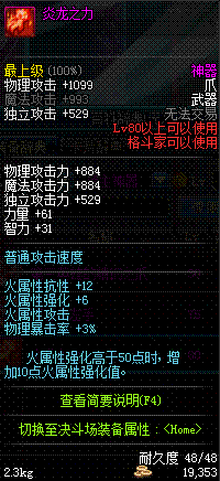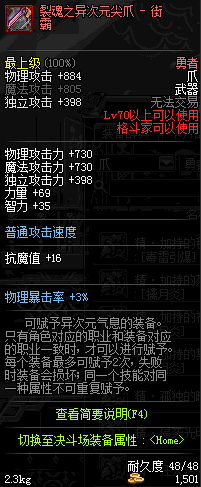 | 75 | 龙跃之爪[1星] - 极武皇 | *完成二次觉醒任务后可以从NPC小铁柱处获得此道具。 | ||