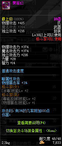 | 辅助装备: | 全职业 鬼剑士 女鬼剑 女格斗 男格斗 神枪手 女枪手 魔法师 男法师 圣职者 暗夜使者 守护者 |