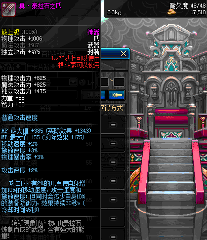 | 72 | 真·泰拉石之爪 | *设计图(70LV以上普通地下城 登场的NPC加百利 出售) *泰拉石之爪 → 用远古神器装备进化书升级(NPC船长鲁特 出售) |