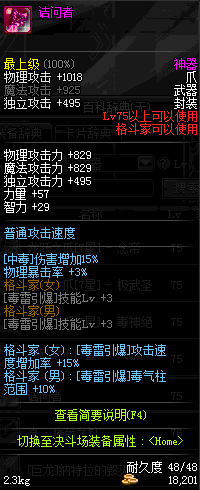 | 75 | 诘问者 | *Lv75~81普通地下城怪物掉落 *在加百利的神秘商店购买 |