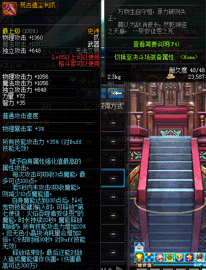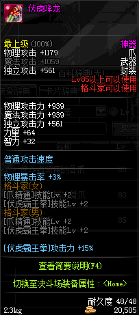 | 85 | 伏虎降龙 | *Lv85~91普通地下城怪物掉落 *在加百利的神秘商店购买 |