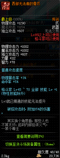 | 85 | 西部无法者的骨爪 | *昨日之巴斯顿 掉落 (在远古地下城里出没。) *从NPC鲁特的物品店出售的[西部无法者武器礼盒]中获得 *船长鲁特 出售 (气吞山河图×50) |