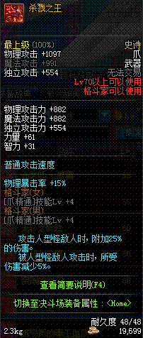 | 35 | 圣物 : 救赎天使之玄铁爪 | *Lv34~41普通地下城怪物掉落 |