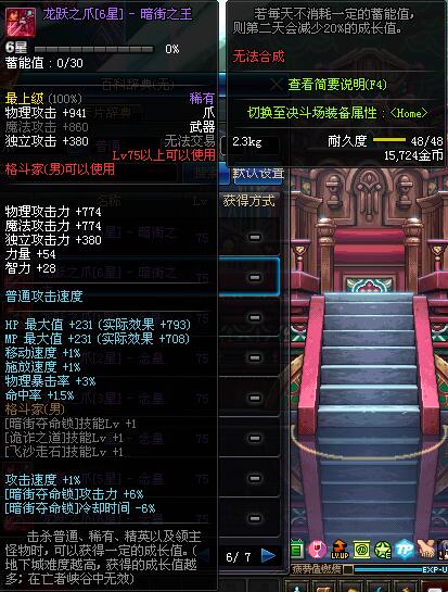 | 75 | 龙跃之爪[6星] - 暗街之王 | *完成二次觉醒任务后可以从NPC小铁柱处获得此道具。 | ||