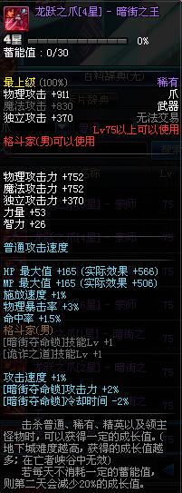| 75 | 龙跃之爪[2星] - 暗街之王 | *完成二次觉醒任务后可以从NPC小铁柱处获得此道具。 | ||