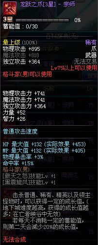 | 75 | 龙跃之爪[3星] - 宗师 | *完成二次觉醒任务后可以从NPC小铁柱处获得此道具。 | ||