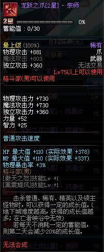| 75 | 龙跃之爪[1星] - 宗师 | *完成二次觉醒任务后可以从NPC小铁柱处获得此道具。 | ||