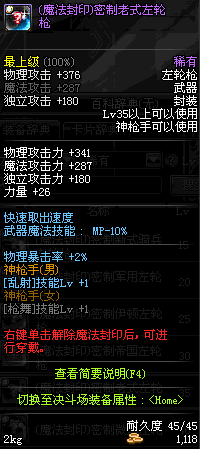| 35 | (魔法封印)密制老式左轮枪 | *Lv34~41普通地下城怪物掉落 |