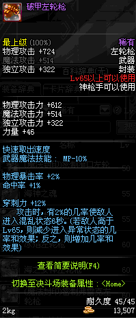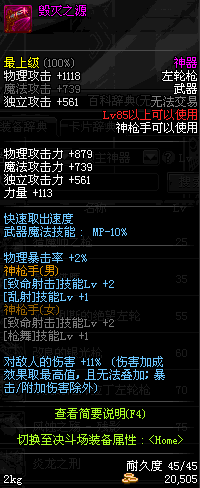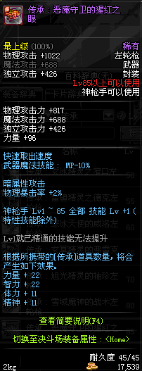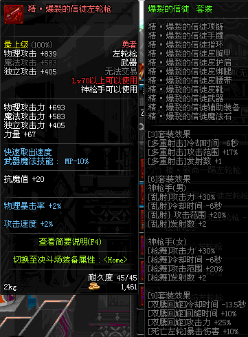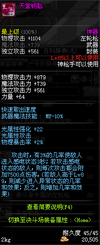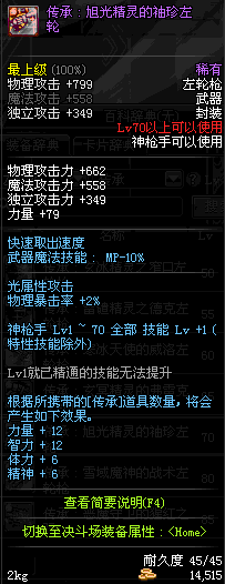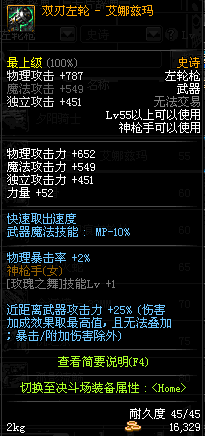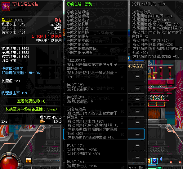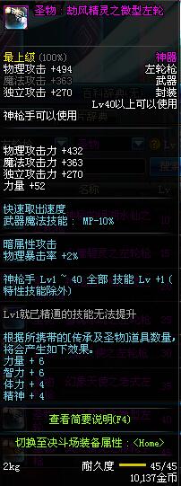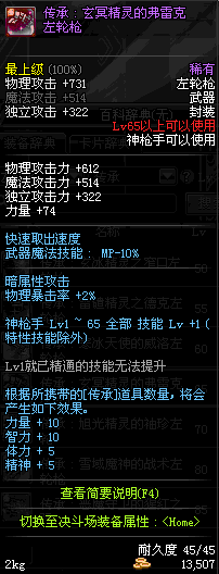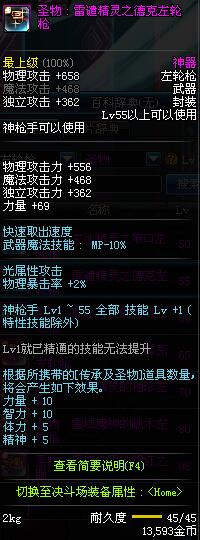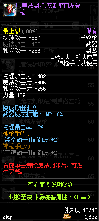 | 45 | 圣物 : 冥火精灵之转轮手枪 | *Lv45~51普通地下城怪物掉落 |