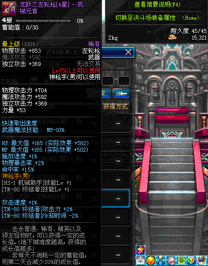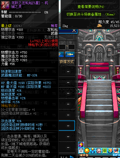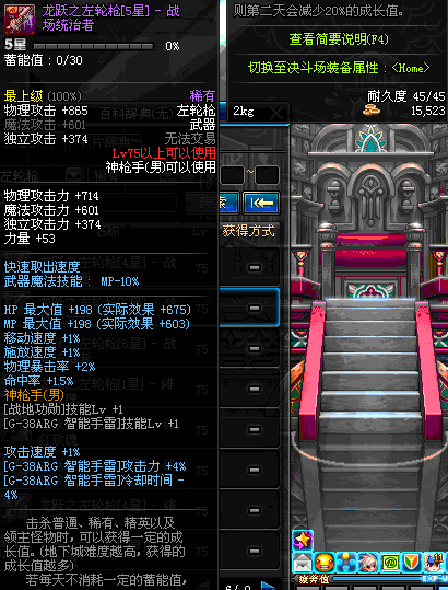 | 75 | 龙跃之左轮枪[4星] – 机械之灵 | *完成二次觉醒任务后可以从NPC小铁柱处获得此道具。 | ||