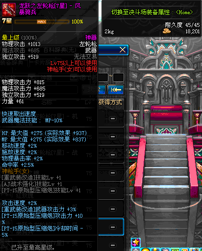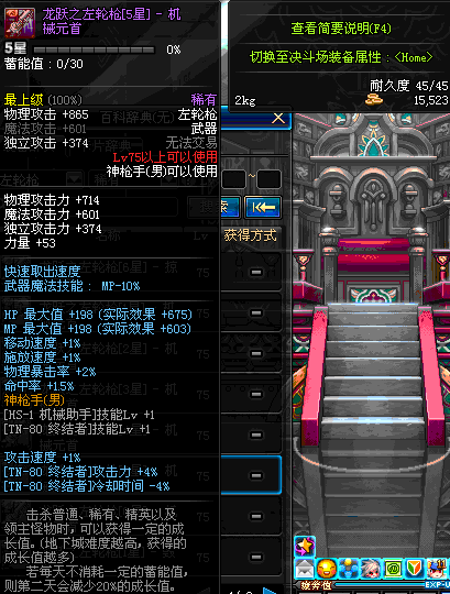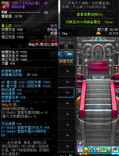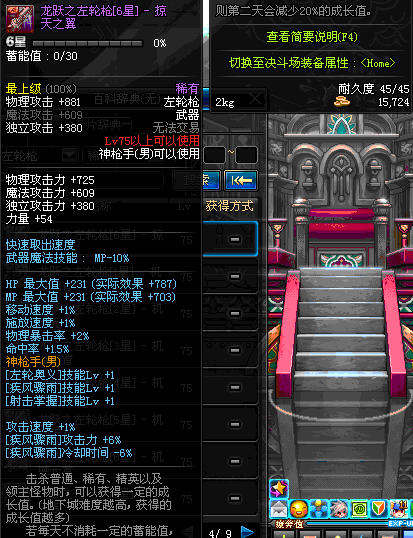 | 75 | 龙跃之左轮枪[6星] – 机械之灵 | *完成二次觉醒任务后可以从NPC小铁柱处获得此道具。 | ||