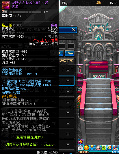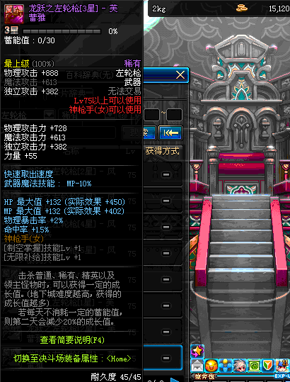 | 75 | 龙跃之左轮枪[3星] – 毁灭者 | *完成二次觉醒任务后可以从NPC小铁柱处获得此道具。 | ||