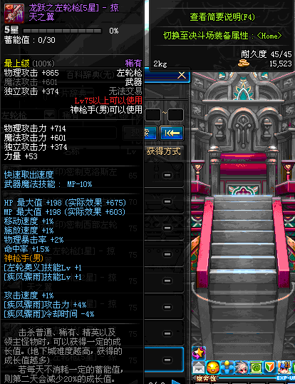 | 75 | 龙跃之左轮枪[5星] – 掠天之翼 | *完成二次觉醒任务后可以从NPC小铁柱处获得此道具。 | ||
