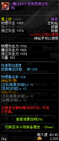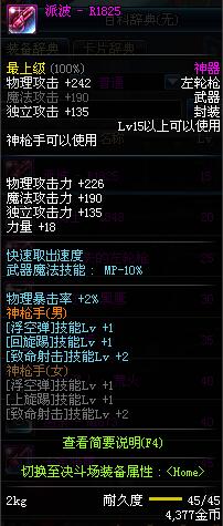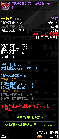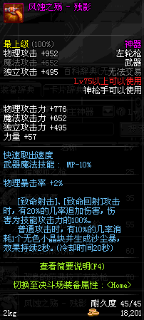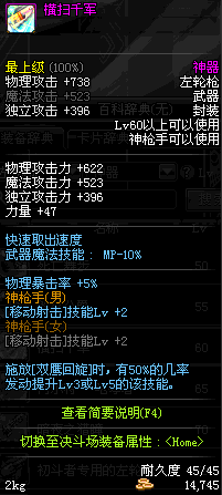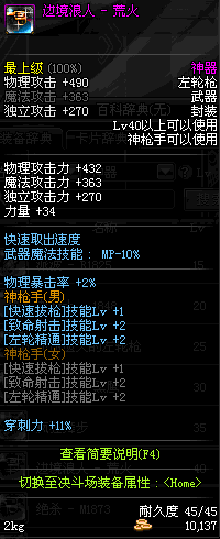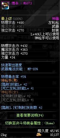 | 40 | 绝杀 - M1873 | *Lv39~46普通地下城怪物掉落 *在加百利的神秘商店购买 |