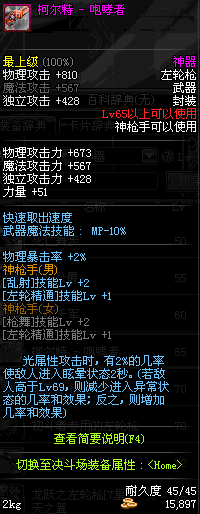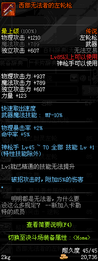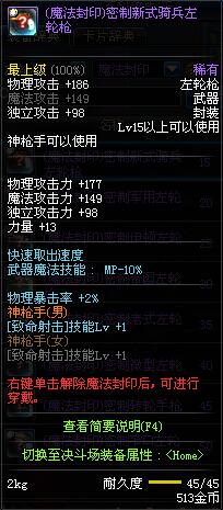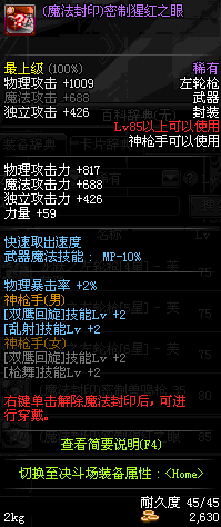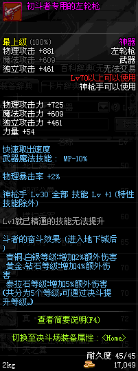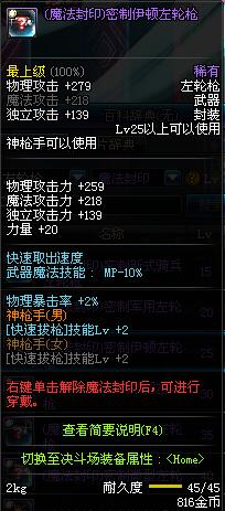 | 15 | (魔法封印)密制新式骑兵左轮枪 | *Lv13~21普通地下城怪物掉落 *完成[专职贺礼]任务 |
