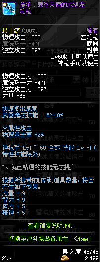 | 60 | 圣物 : 寒冰天使的威洛左轮枪 | *Lv58~66普通地下城怪物掉落 |