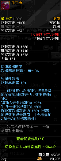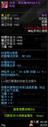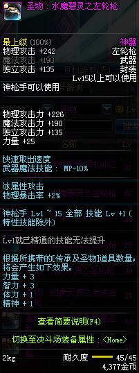 | 25 | 圣物 : 雪魂冰魄之左轮枪 | *Lv24~31普通地下城怪物掉落 | ||