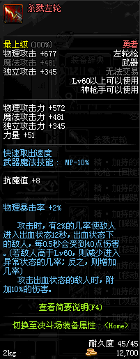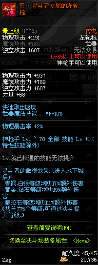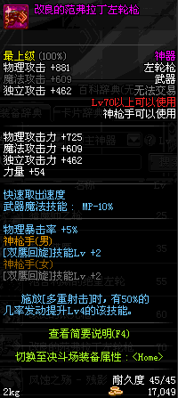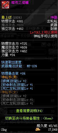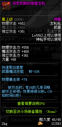 | 55 | 范哲利斯的绝望左轮 | *范哲利斯 掉落(无尽的噩梦) *在NPC敏泰的物品店购买(阿拉德陨石×330) |