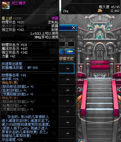 | 50 | 死亡舞步 | *Lv50~56普通地下城怪物掉落 *在加百利的神秘商店购买 |