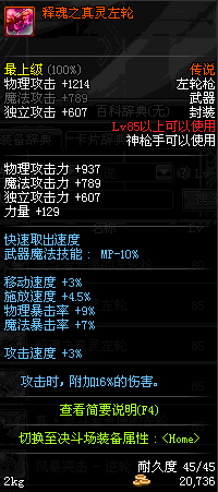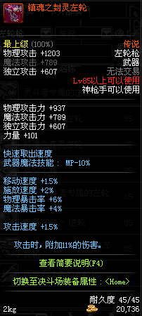 | 85 | 镇魂之封灵左轮 | *时空之门地区 - 吟游诗人艾丽丝 出售 (镇魂之石×100) *购买镇魂武器礼盒(低级镇魂之石×140) |