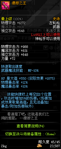 | 85 | 漫游之王 | *Lv84~91深渊地下城怪物掉落 *攻坚队完成安徒恩团队模式的[消灭安徒恩]任务时,获得的奖励。 |
