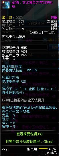 | 50 | 圣物 : 玄冰精灵之窄口左轮枪 | *Lv50~56普通地下城怪物掉落 |