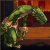 攻击:震地(冲击波, 全图范围),坚硬的鳞(使用无色小晶体时出现, 出现高HP护甲),落石(被浮空时出现),怒吼(全图范围)
