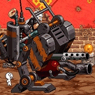 AT-5T 说明:武器座椅(可走动);按Z乘坐;A-发射子弹和火箭;S-冲撞;D-发射火焰;F-3发导弹;G-全图爆炸必杀技,需要吃机油(地图上有)。HP变0会爆炸。