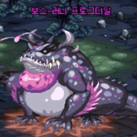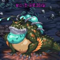 模式1:生成三个沼泽地带,射出珠子,被珠子攻击时产生沼泽。 (踩到沼泽的话会受到中毒伤害) 共同模式: 跳跃移动, 跳跃的地点产生攻击判定, 击退, 舌头鞭挞, 吞噬. |